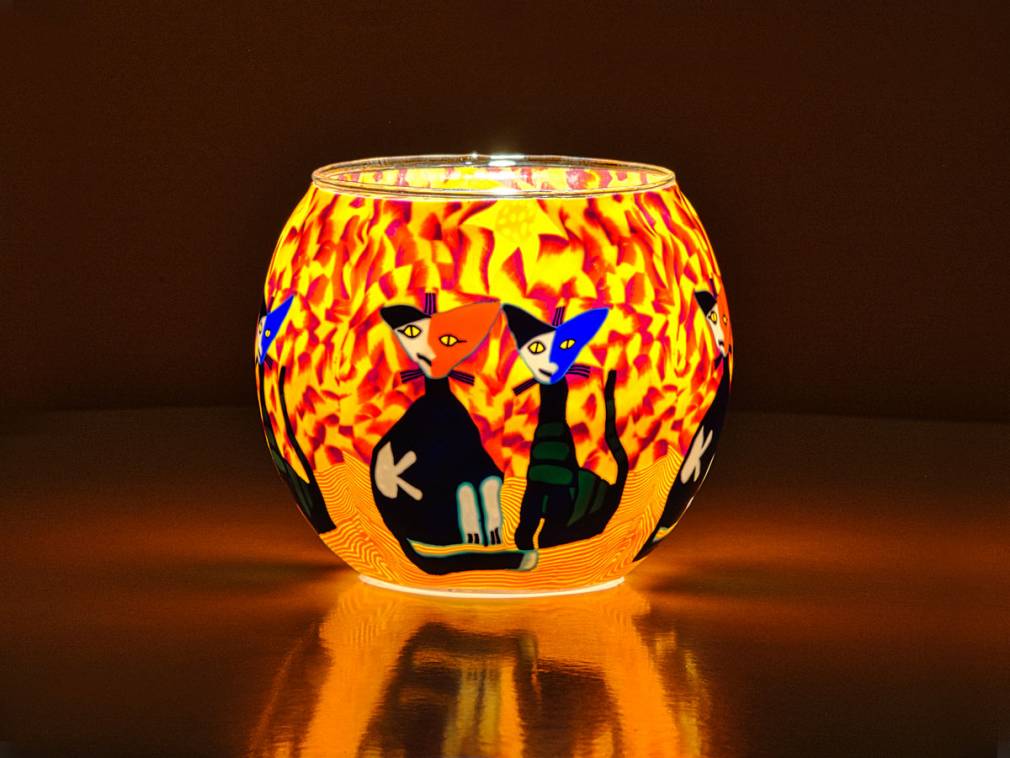 Leuchtglas 11cm Nr.110 Katzenpaar am Tag