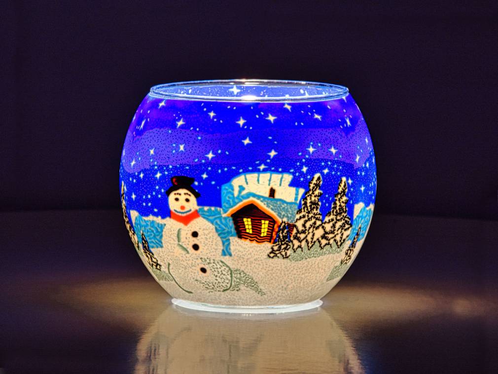 Leuchtglas 11cm Nr.592 Schneemann in den Bergen