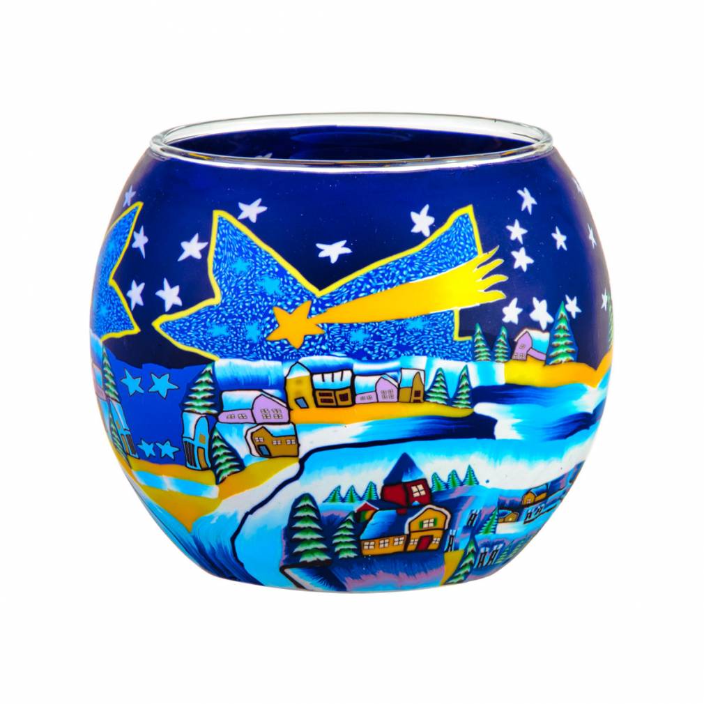 Leuchtglas 11cm Nr.66 Sternschnuppe über Winterdorf