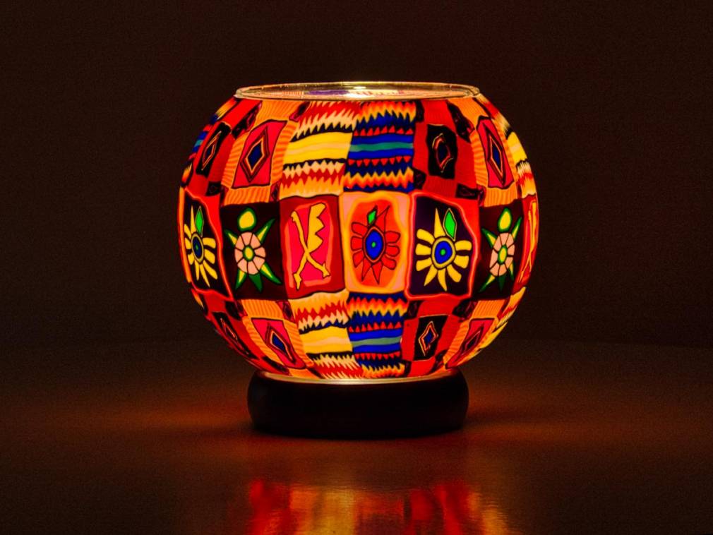 Die Motive der bunten und farbenfrohen Leuchtgläser werden per Handarbeit hergestellt und auf das Leuchtglas aufmodelliert.