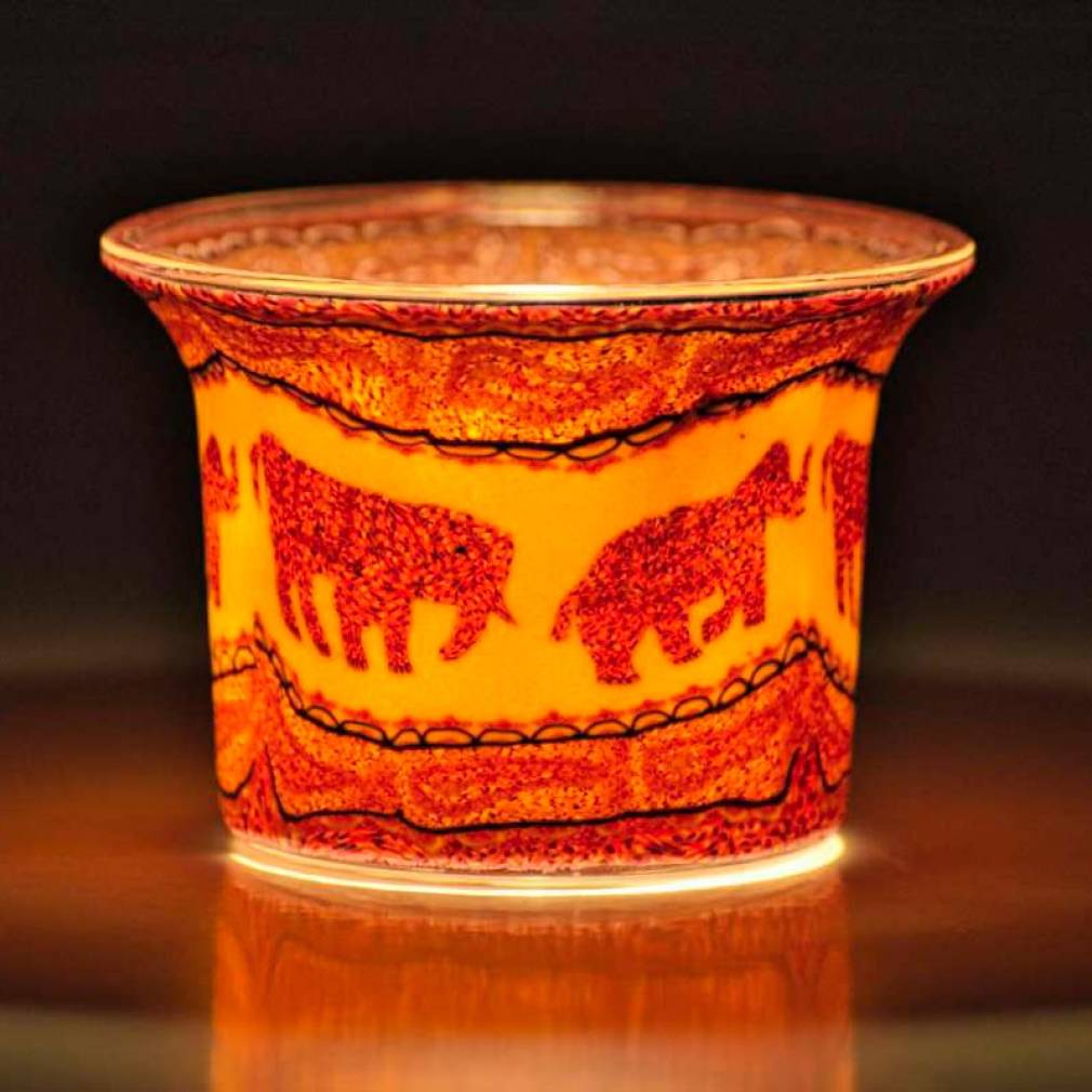 Votiv Glas Nr.211 - vorbeiziehende Elefantenkolonne